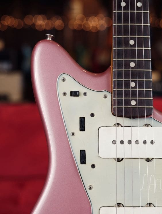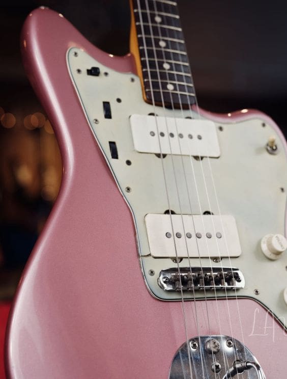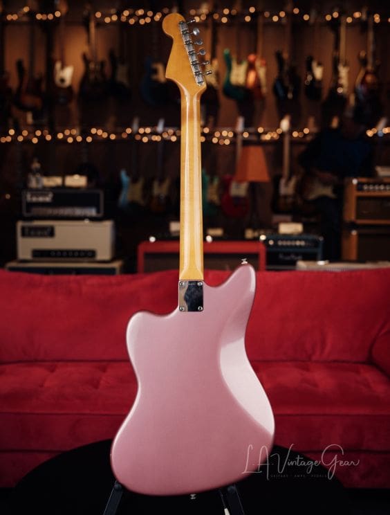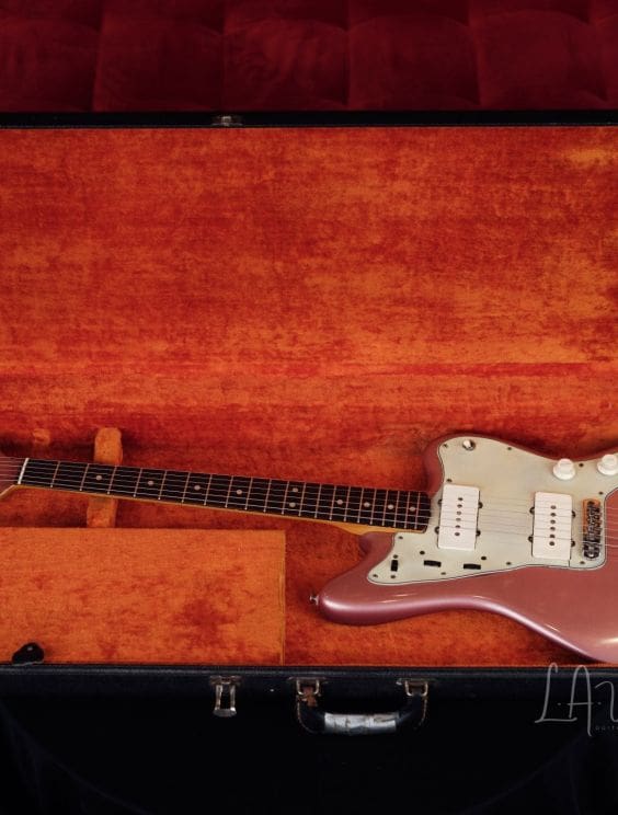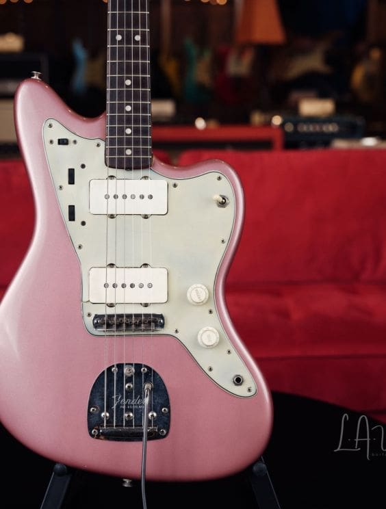 Here we have an amazing 1964 Fender Jazzmaster refinished in Burgundy Mist! This is one of two incredible vintage Jazzmaster's we currently have in!