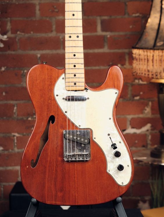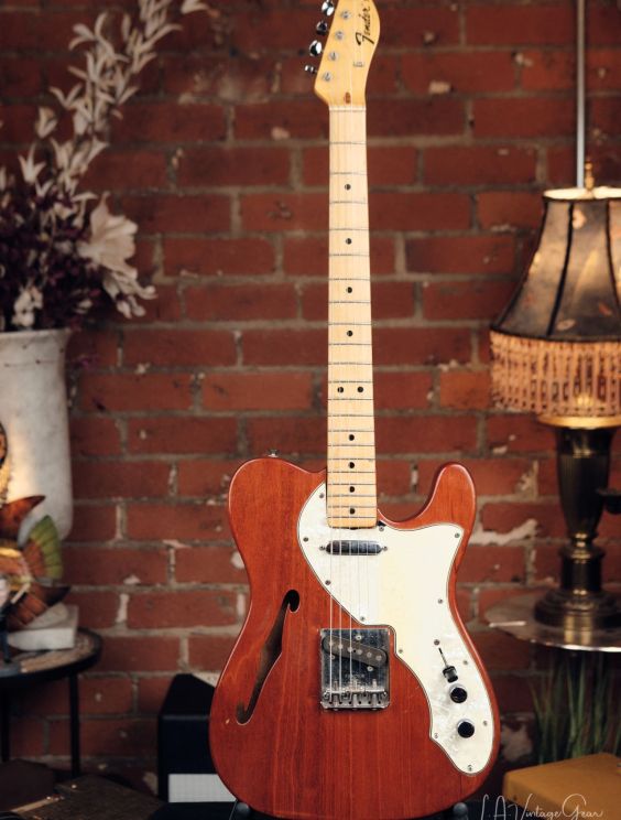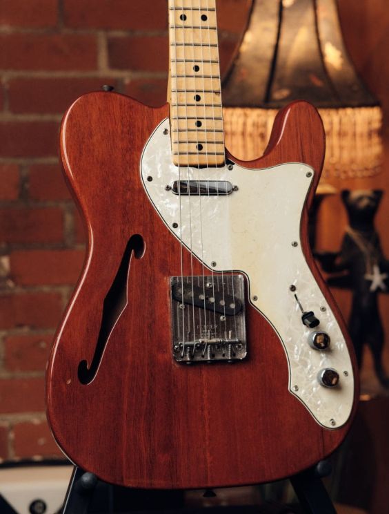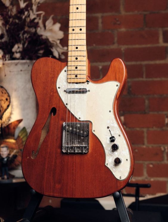 Check out this 1971 Fender Thinline Telecaster featuring the rarer mahogany body, only available for a limited time during early production years. This is an all-original example (aside from a pro refret) and an outstanding player with classic vintage tone. This guitar is in excellent vintage condition. Very little playwear overall. The only notable blemish is a small chip at the upper pickguard screw hole. Neck is straight, frets are fresh, and electronics are untouched. Fully functional and ready to play. The mahogany body adds a warmer, rounder resonance to the classic Tele twang. Light, resonant, and super responsive. An ideal blend of vintage tone and feel.