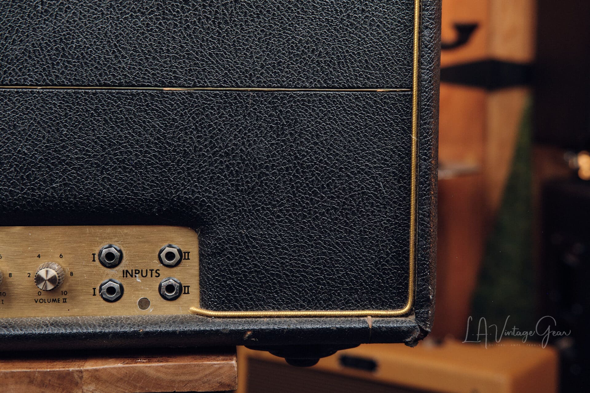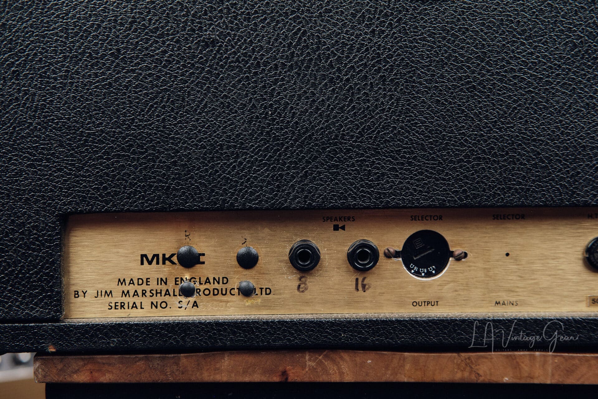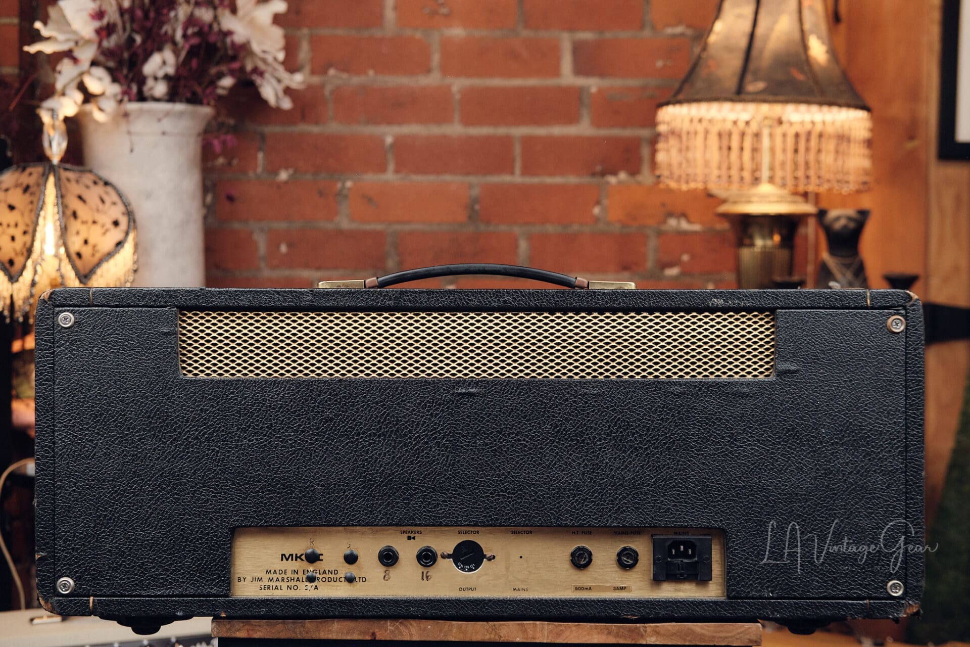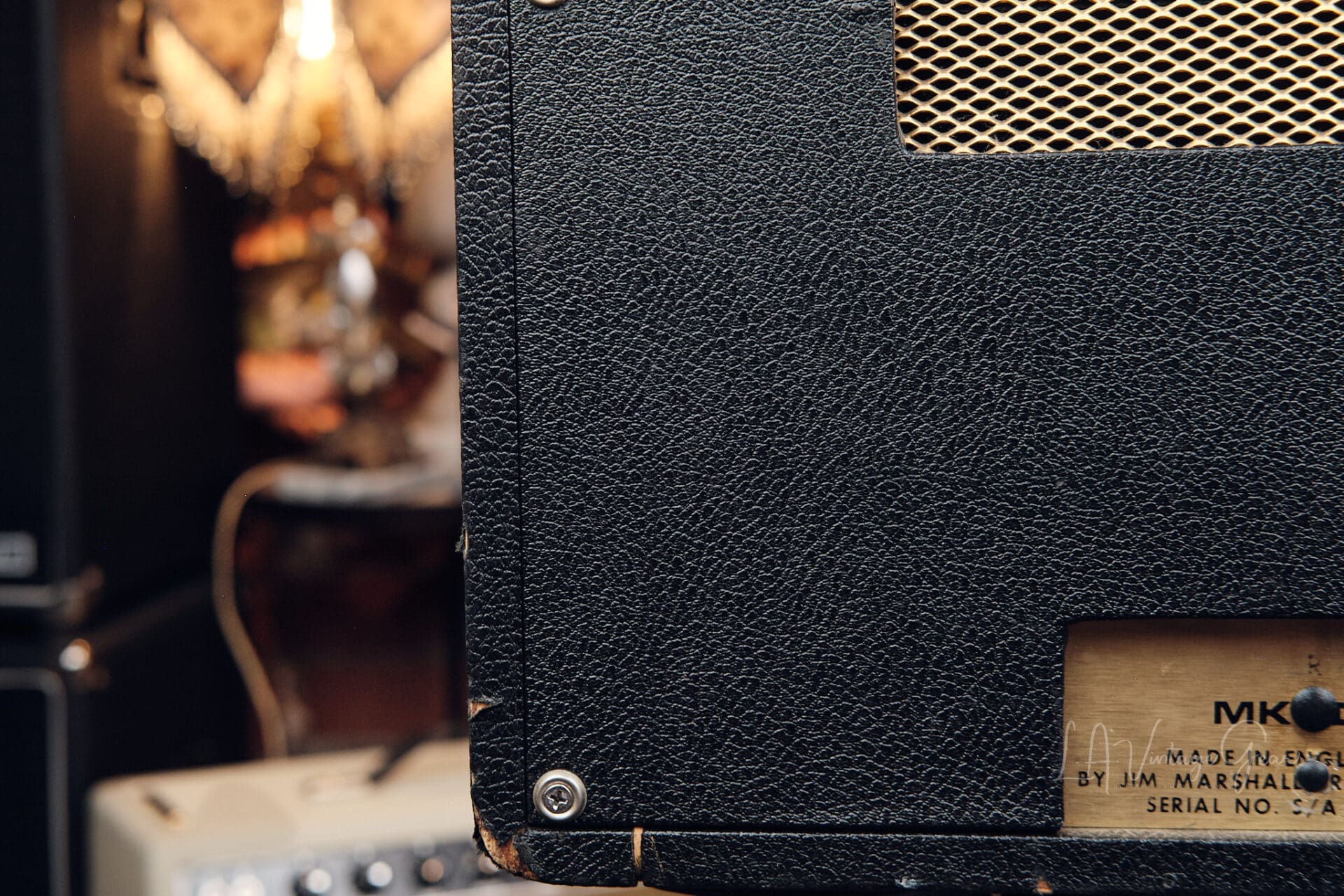 Here we have a 1975 Marshall JMP 50 Lead Model number 1987. This amp is in overall very good shape for it’s age. There are a couple of extra holes drilled in the chassis from previous mods that have been undone. Chassis is mostly original with only the needed filter caps changed during routine maintenance. The amp features it’s original Drake transformers and it sounds incredible. There’s nothing like the natural overdrive from these amps. This one comes to us from the collection of LA session player Thom Rotella.