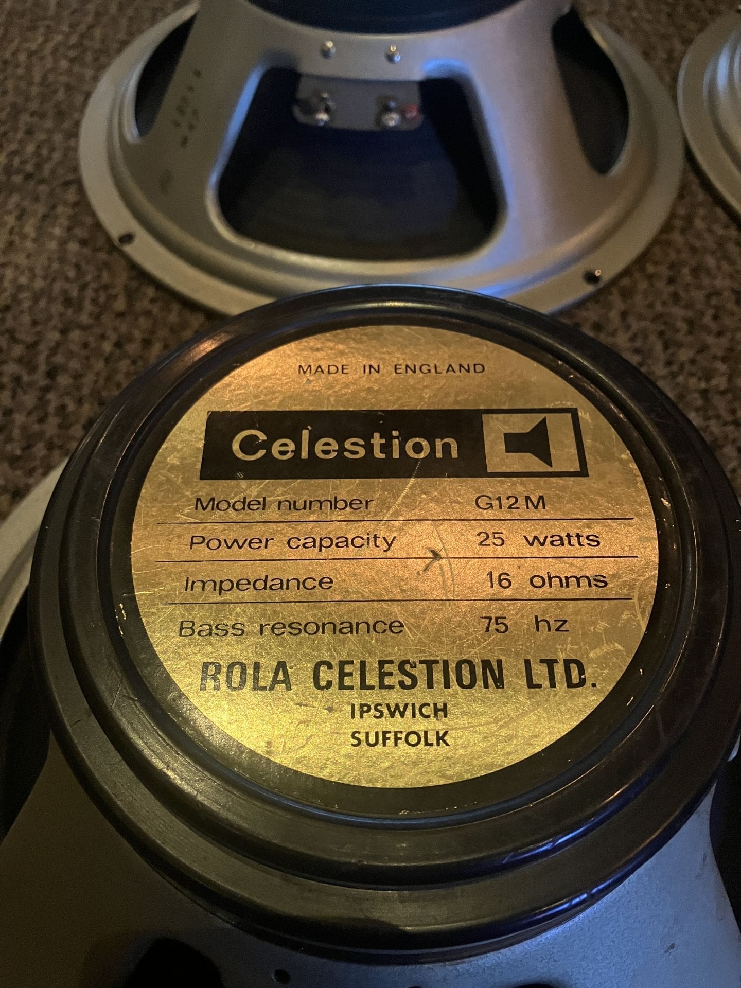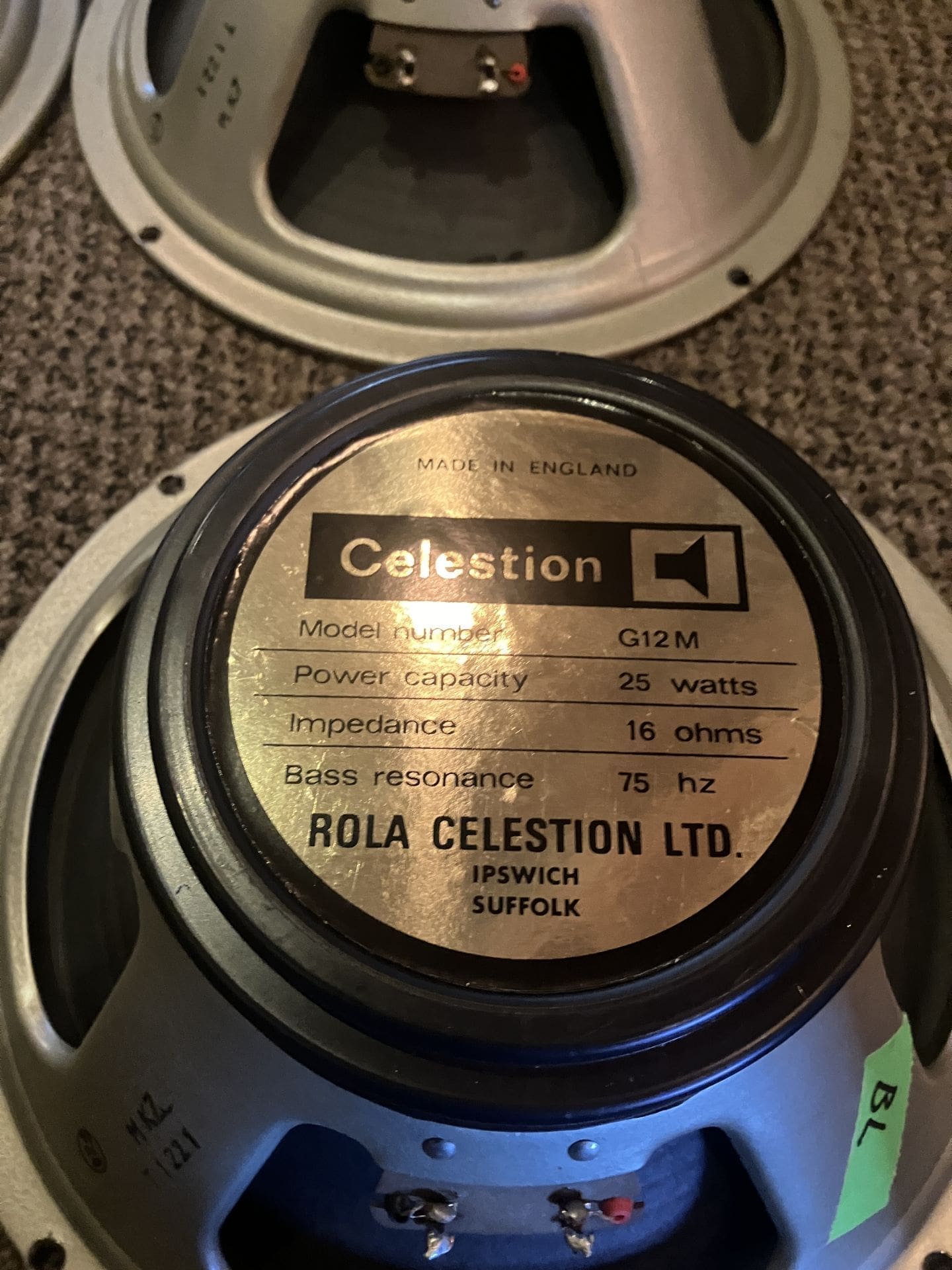 70s Celestion G12-M Black Back Quad — 25watt 16ohm 75hz — One Reconed
