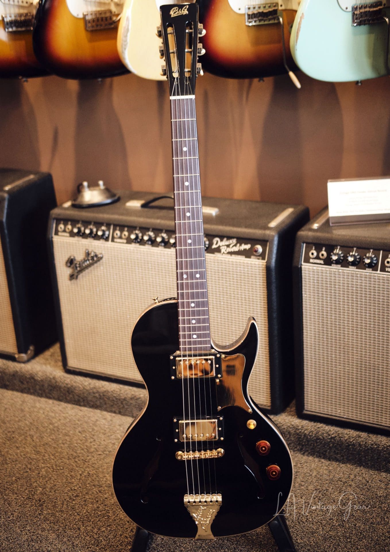 B&G Little Sister Crossroads Electric Guitar – Glossy Black Finish