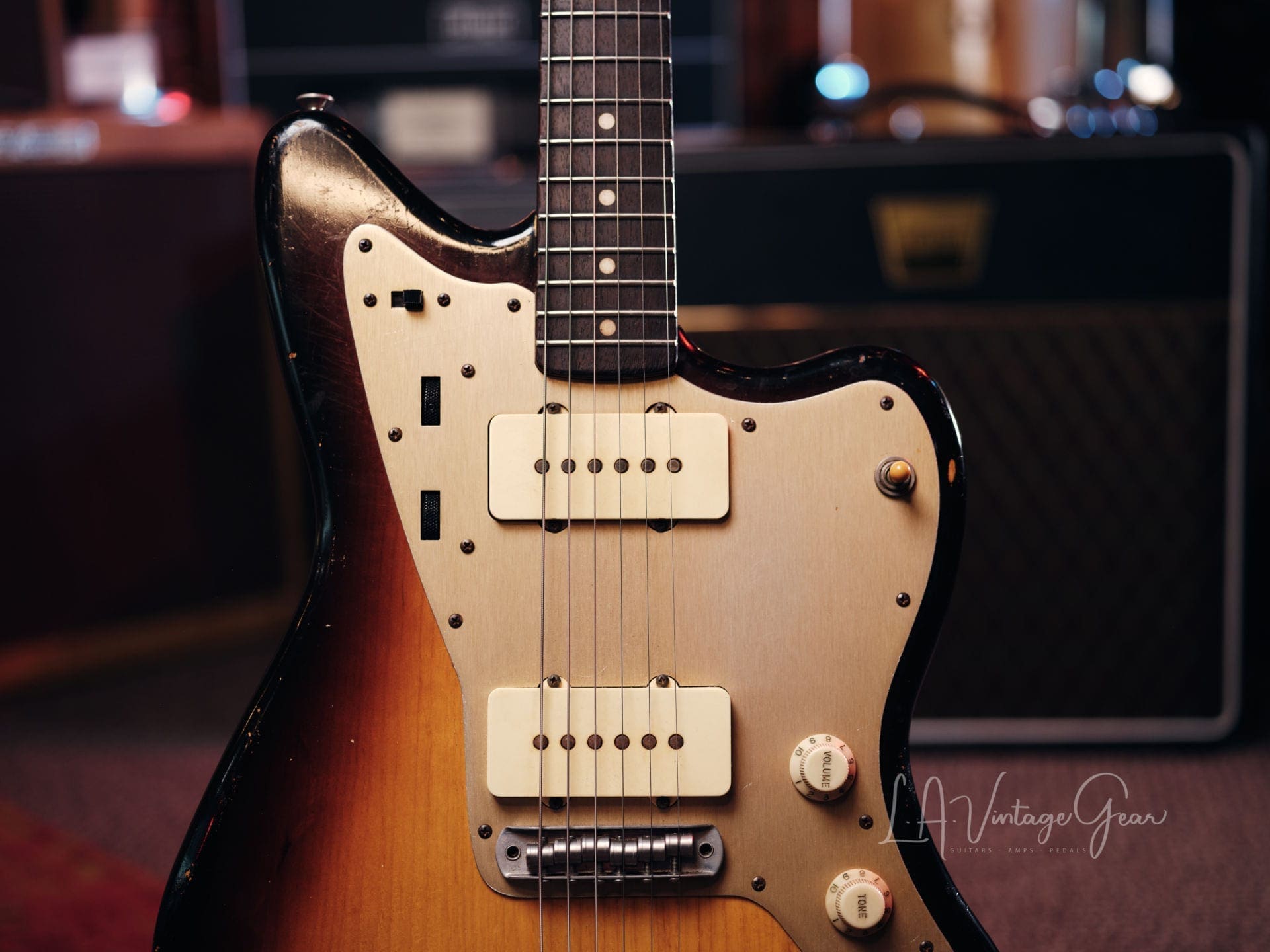 Danocaster Offset Electric Guitar – Anodized Gold Pickguard & Sunburst Finish