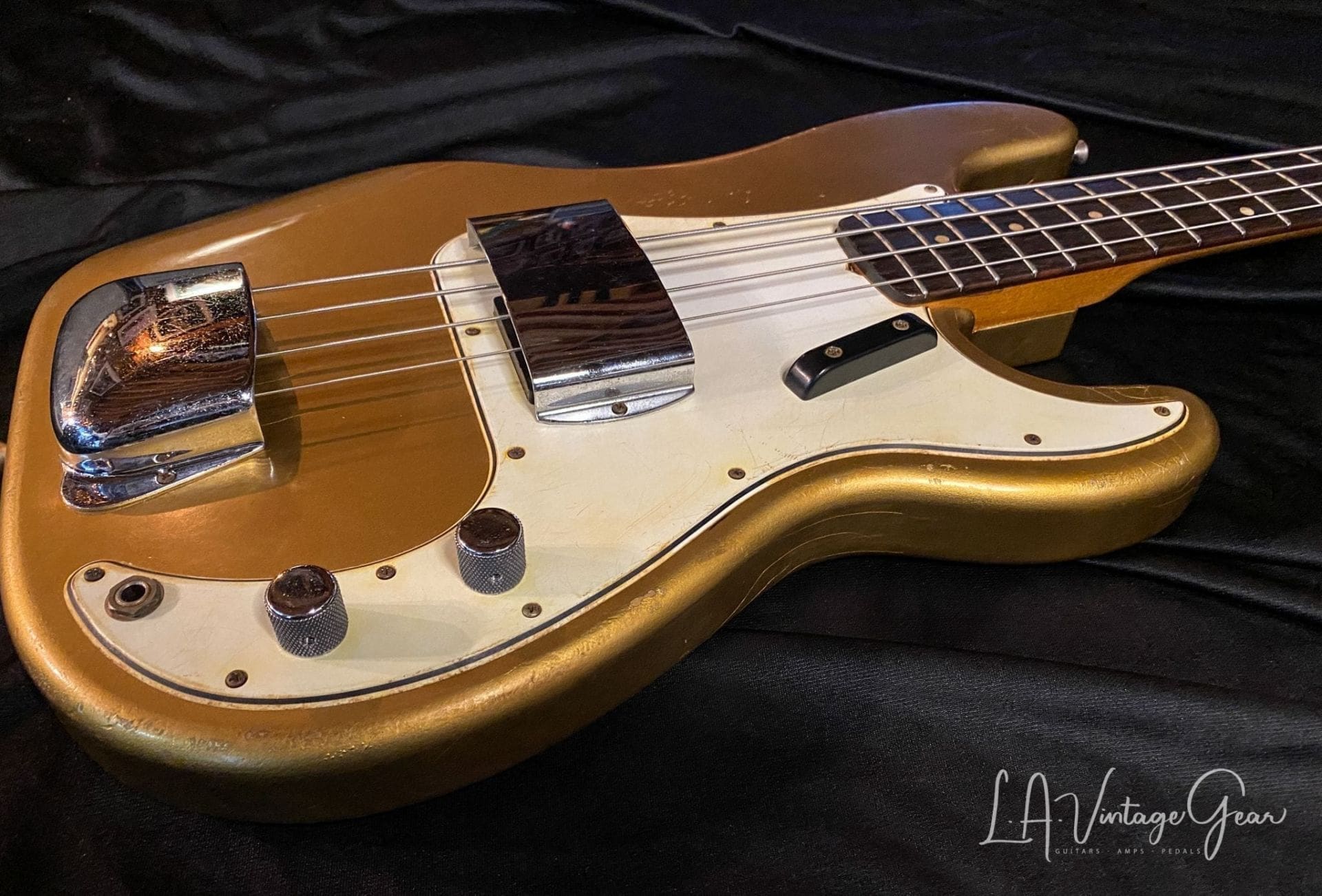 (SOLD) Danocaster P-Style Bass in Firemist Gold – with Fralin Pickups!
