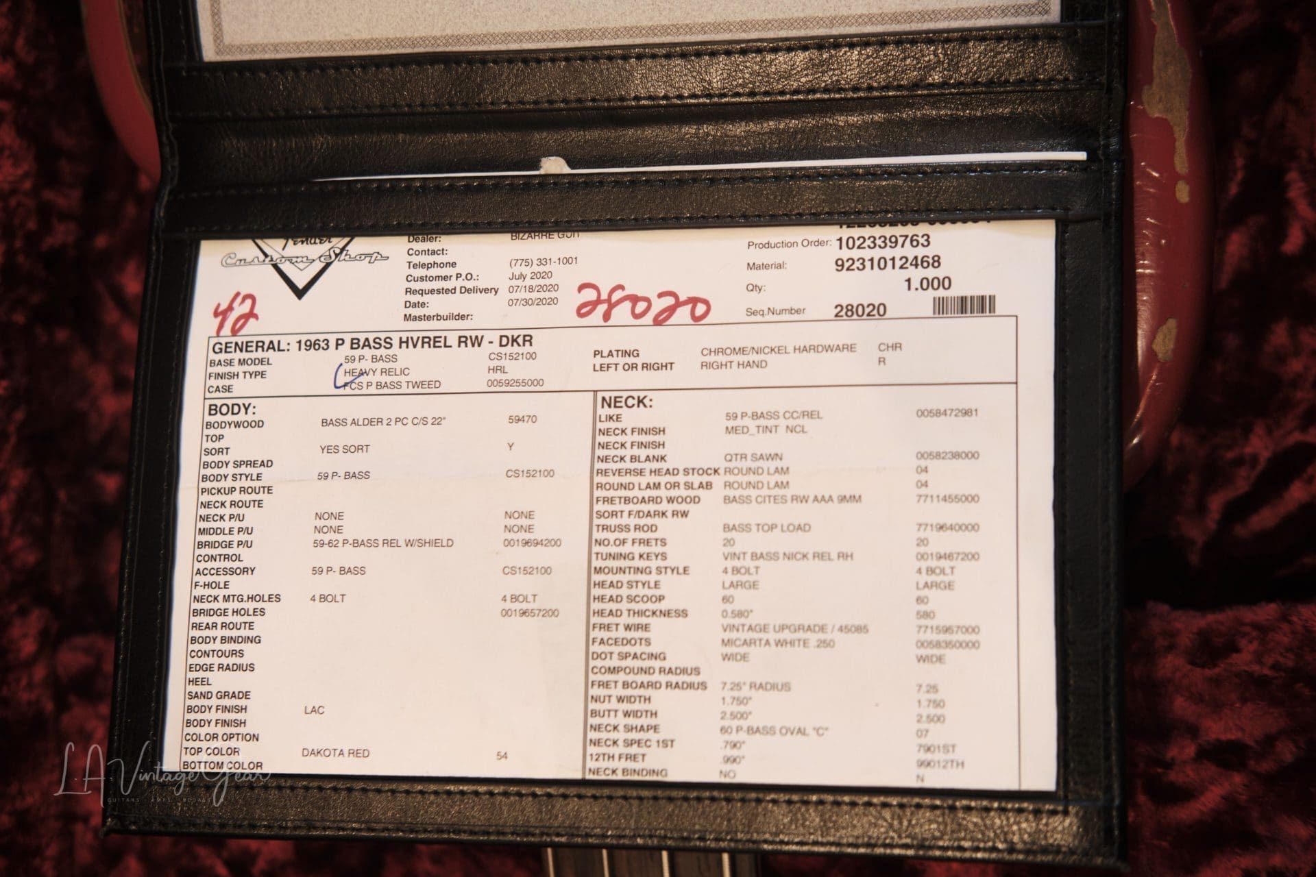 Fender ’63 Custom Shop Precision Bass Guitar (2020) – Heavy Relic in a Dakota Red Finish