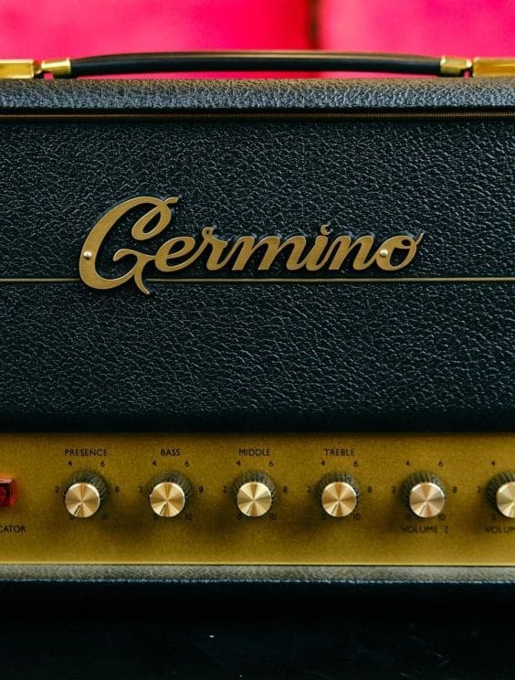The Club 40 as with all Germino amplifiers use the same quality components. Carbon film and carbon comp resistors along with film/foil caps mounted on a hand wired turret board. F&T electrolytic capacitors, military spec pots, Cliff jacks and premium tube sockets all mounted in an aluminum chassis with spot welded corners for strength. Custom wound transformers are period correct using 1202-118 P/T, 784-139 OPT and 352-114 choke by Heyboer.