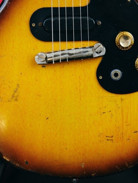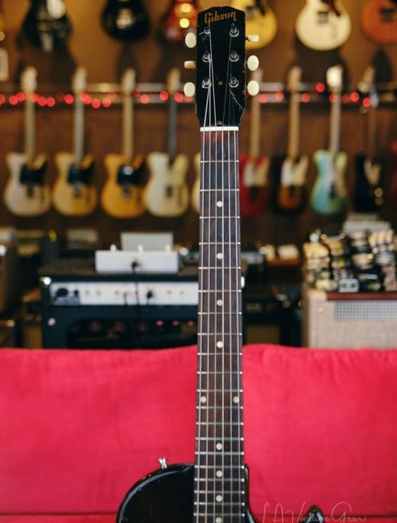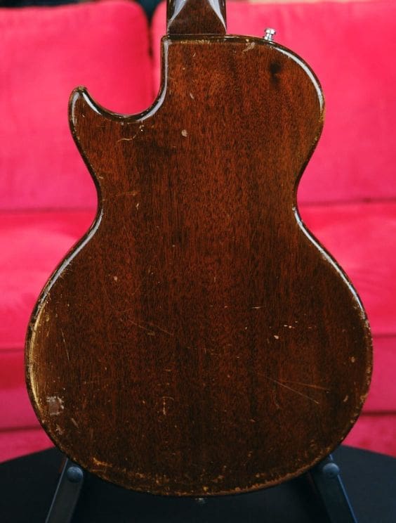 The original Gibson Melody Maker was first launched in 1959 and discontinued in 1971. Its purpose was as an even cheaper alternative to the Gibson Les Paul Junior which was itself introduced as a student model in 1954. From its inception it had a thin slab-style mahogany body and a glued in one-piece mahogany set neck. All the electronics, from the small "Fender style" single-coil pickups to the cable jack, were assembled on the pickguard and installed in a rout in the front of the body. The strings ran from a straight-sided simplification of the traditional Gibson headstock at one end to a wraparound bridge/tailpiece unit at the other.