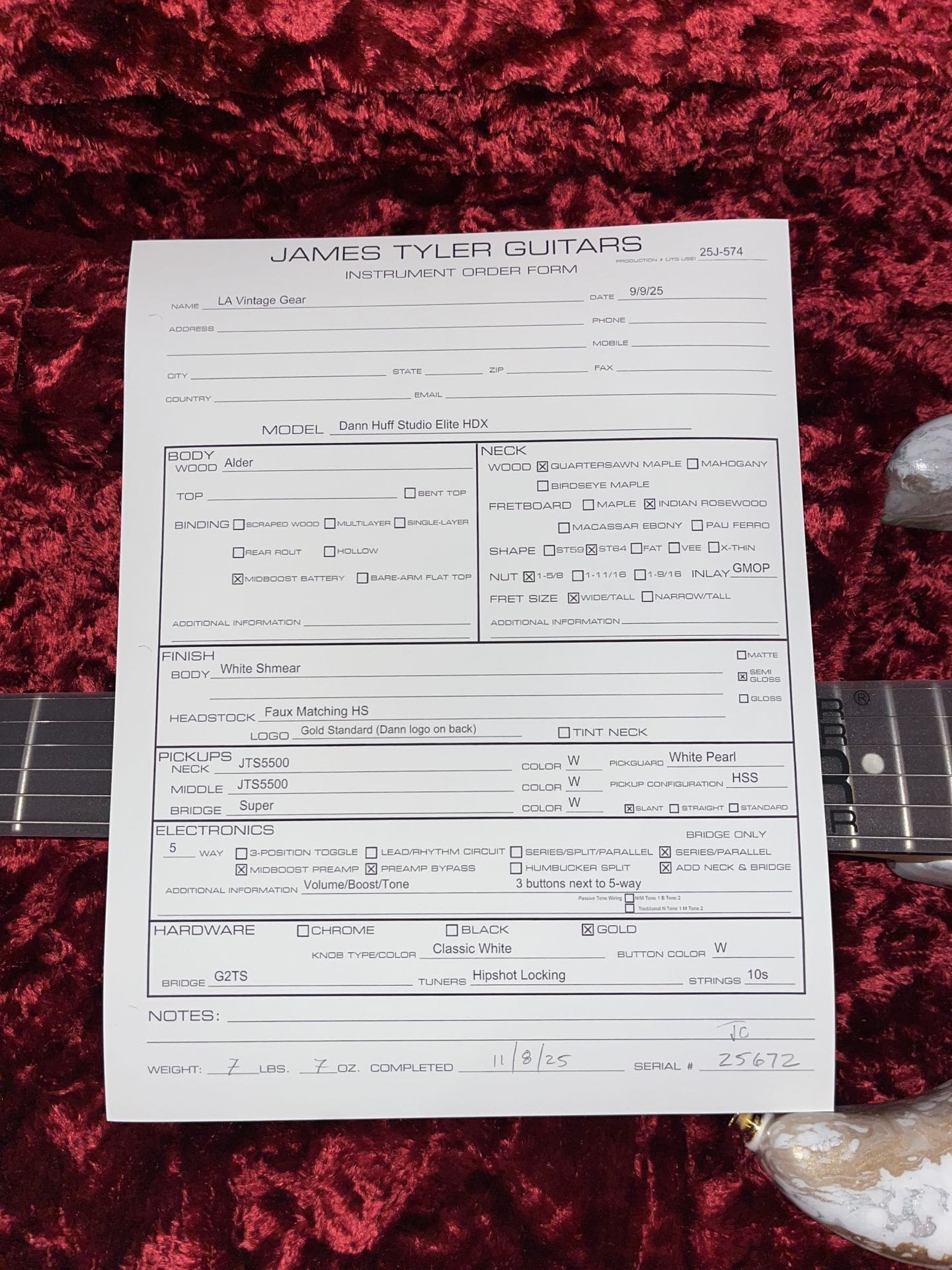 James Tyler Dann Huff Studio Elite HDX Electric Guitar – Brand New in White Shmear!