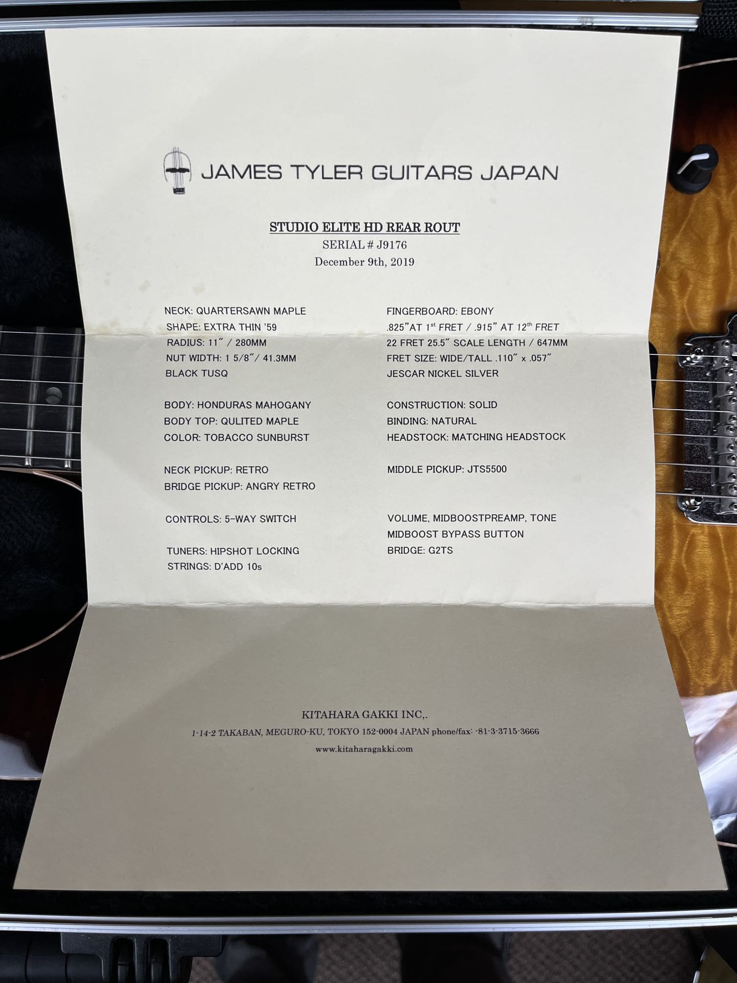 James Tyler Japan Studio Elite HD Electric Guitar – Rear Route with Quilted Maple Top!