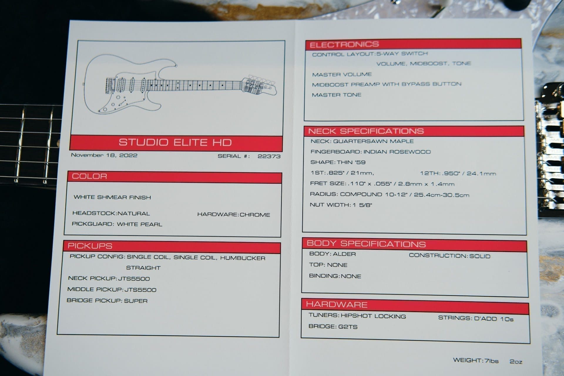 James Tyler Studio Elite HD S-Style Electric Guitar in a White Shmear Finish-Brand New!