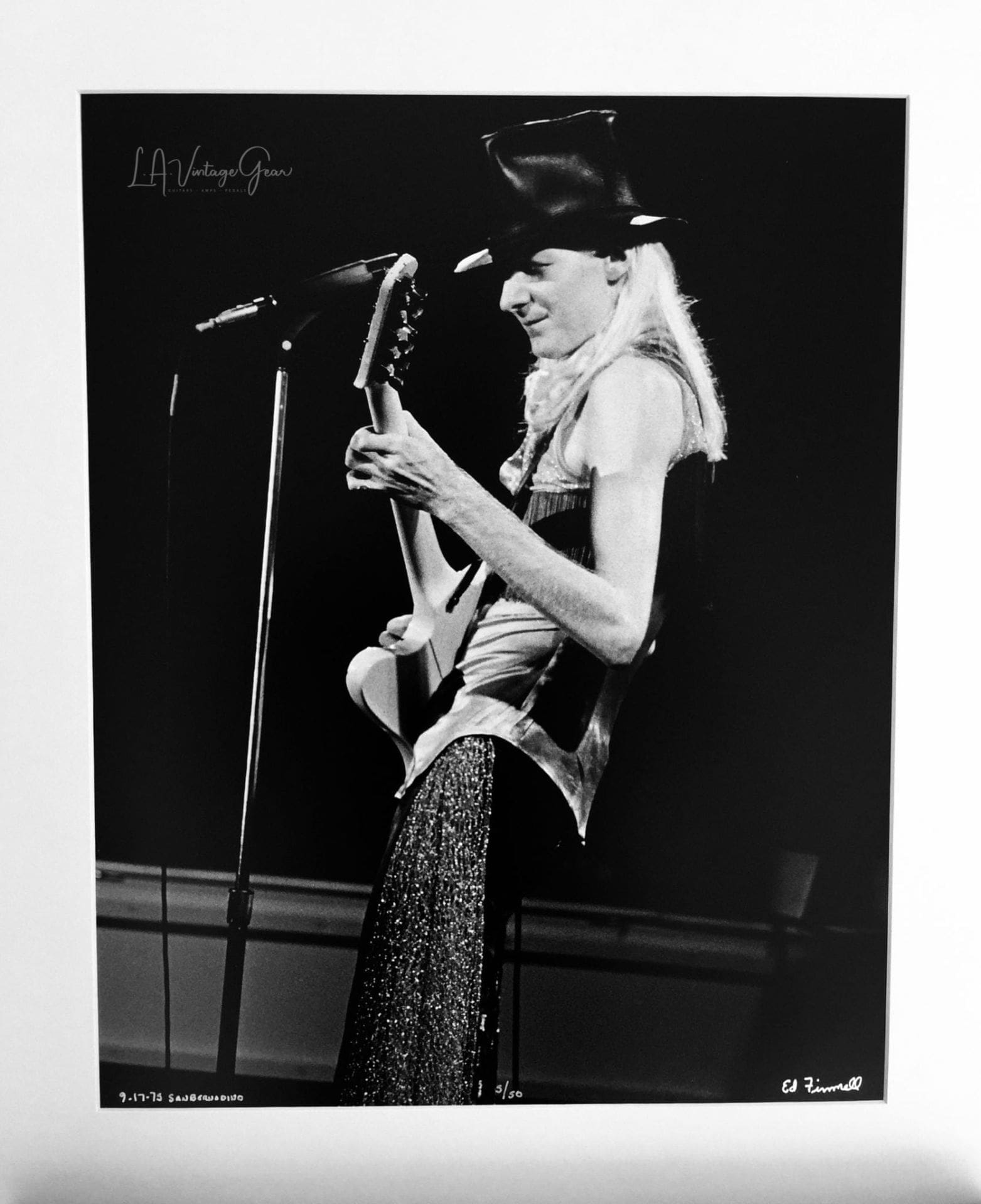 Johnny Winter – Winter Brothers Tour 1975 – Authentic Concert Photo by Ed Finnell – B&W – White Matte 20″ x 24″