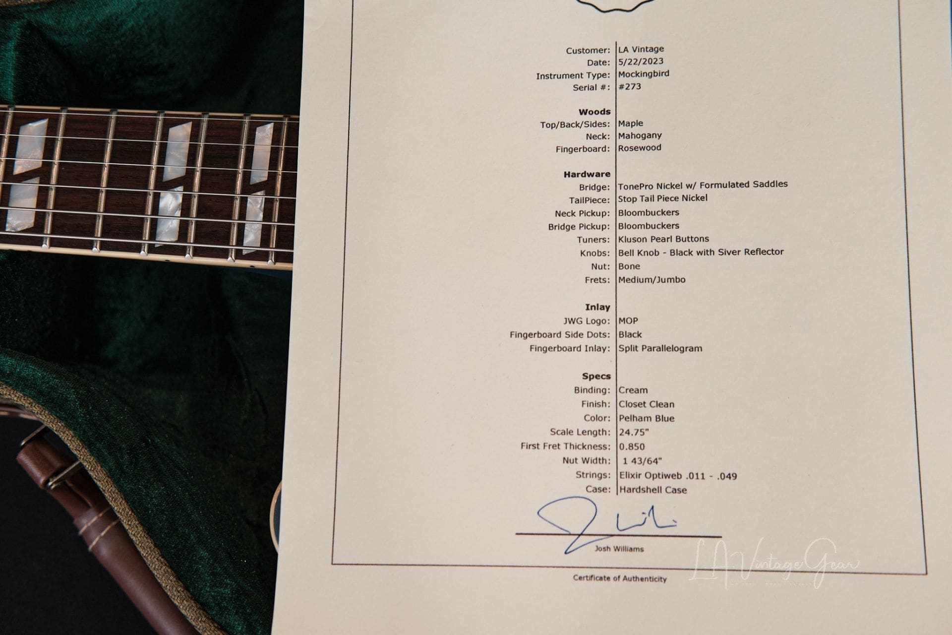 Josh Williams ‘Mockingbird’ JWG273 Semi-Hollowbody Electric Guitar-Pelham Blue Finish & Bloombucker Pickups!