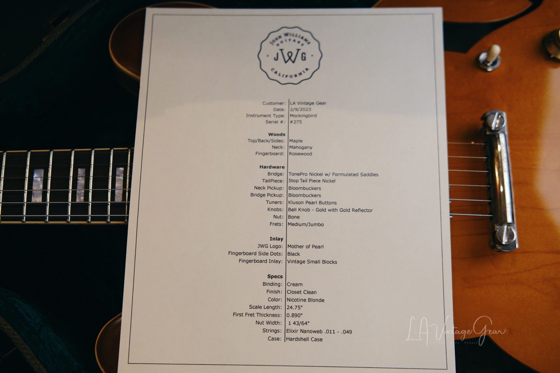 Josh Williams ‘Mockingbird’ JWG275 Semi-Hollowbody Electric Guitar-Nicotine Blonde Finish & Bloombucker Pickups!