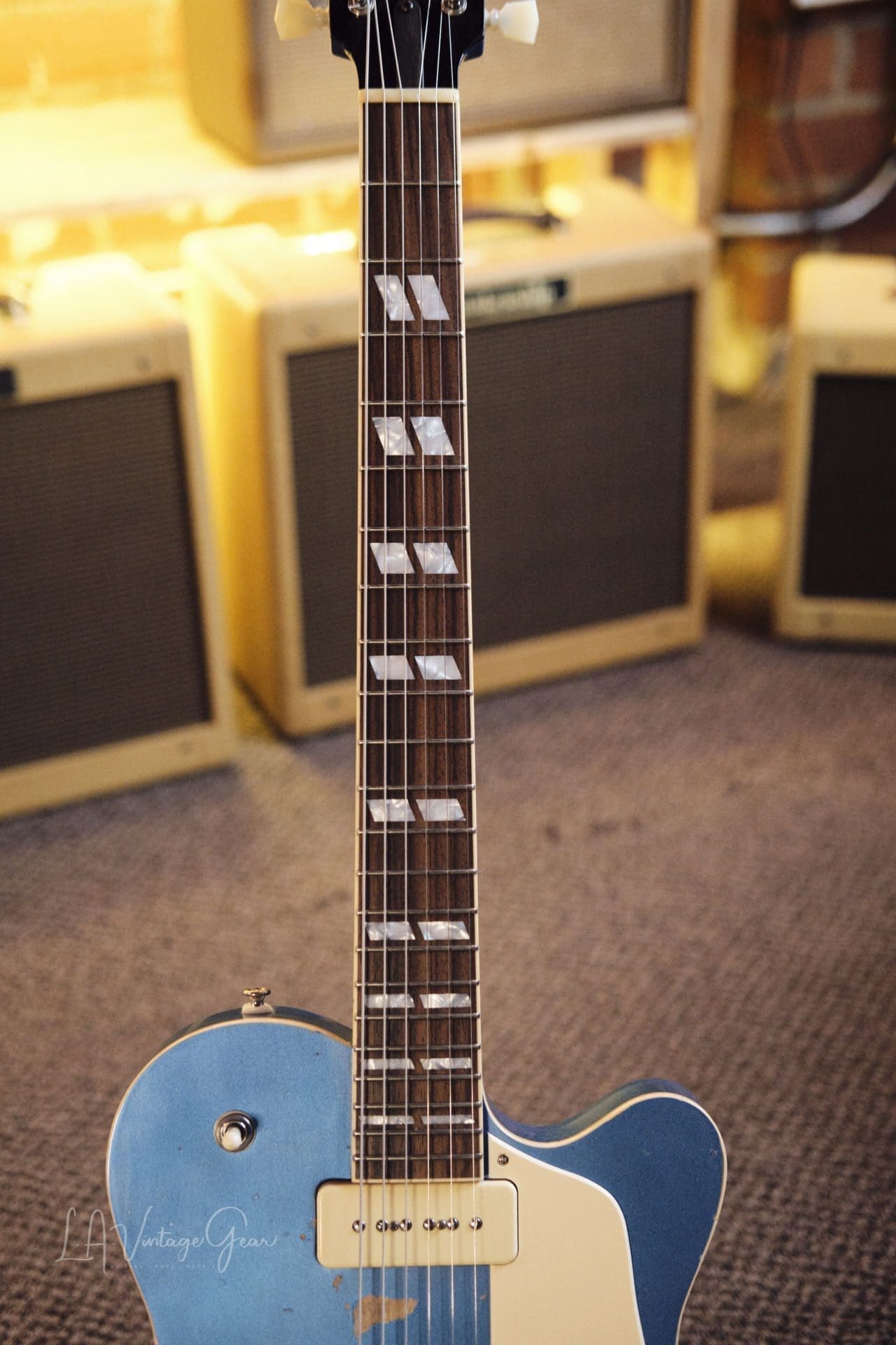 Josh Williams ‘Stella’ Single Cut Electric Guitar – Lightly Relic’d Pelham Blue Finish with P90 Pickups! Brand New!