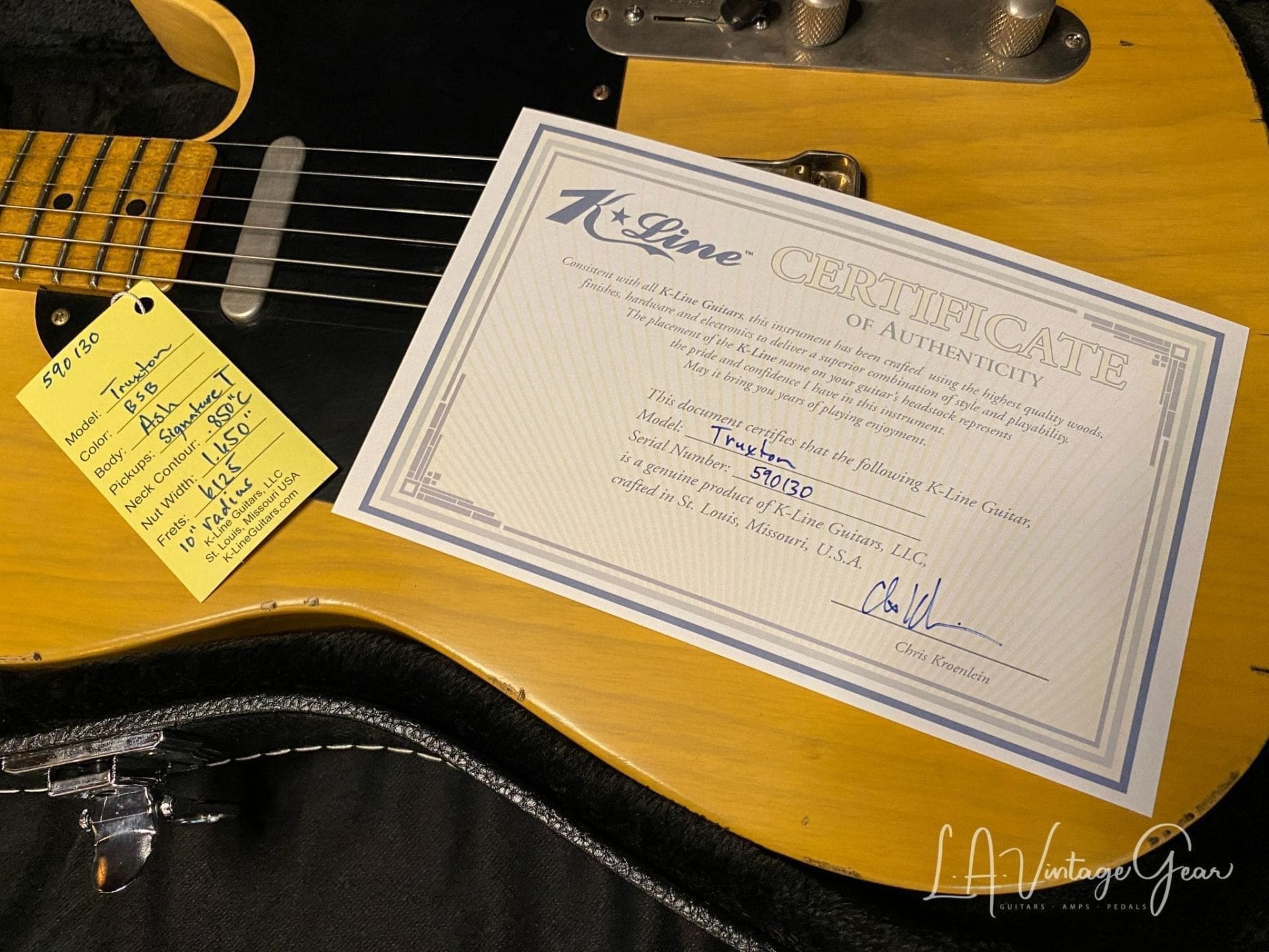(SOLD) K-Line Truxton Black Guard T-Style Electric Guitar in a Butterscotch Blonde Finish