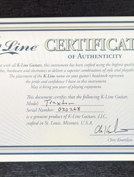 "How do you improve a legendary design? K-Line’s done it by using top notch components mated to the proper tonewoods with the best electronics. The Truxton bears the standard single coil pickups and hardware configuration of the traditional single cutaway guitars from the past."