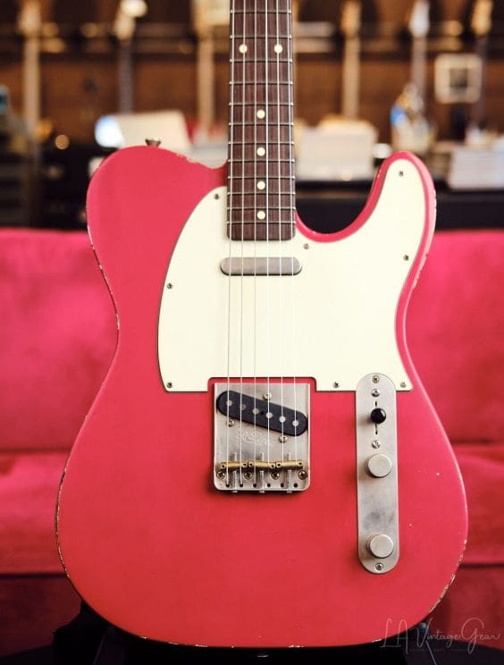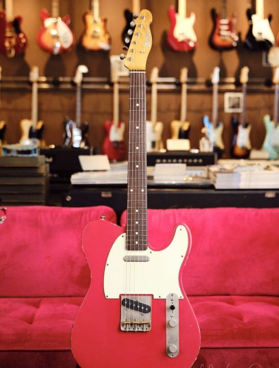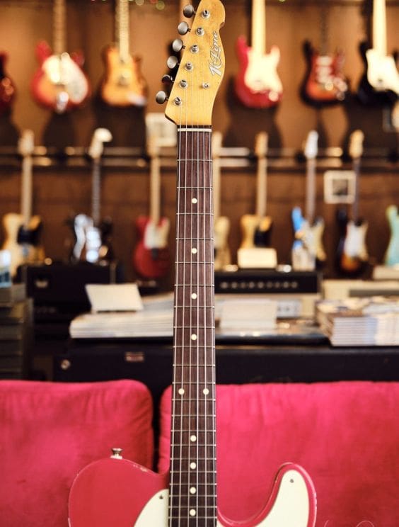 This K-Line Truxton T-Style Dakota Red Lightly Relic'd Electric Guitar has vintage vibes all round ! Can't say enough great things about these guitars. Playability, sound, vibe....it's all there! Comes with Gig Bag!