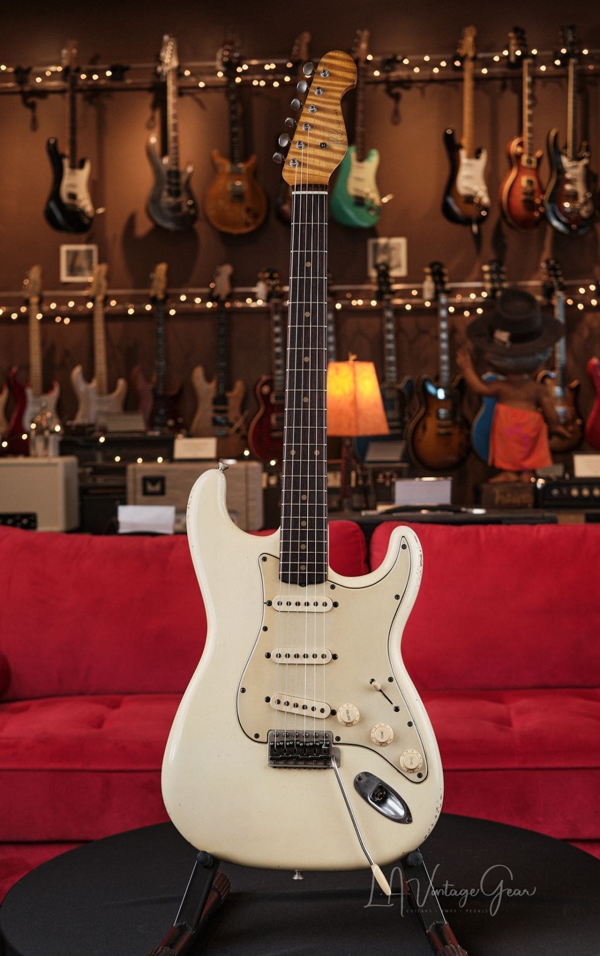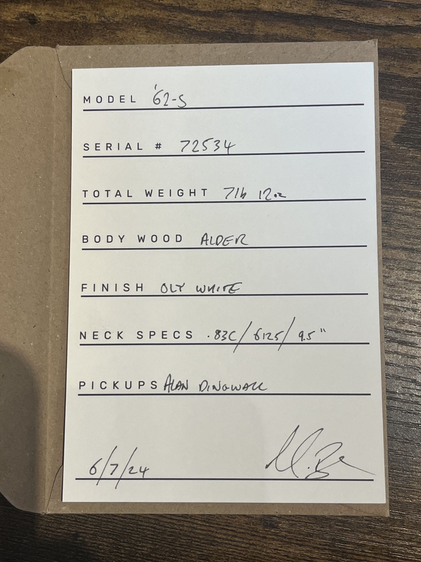 M.B. Guitars ’62-S – Relic’d Olympic White with Flame Maple Neck, Just In!