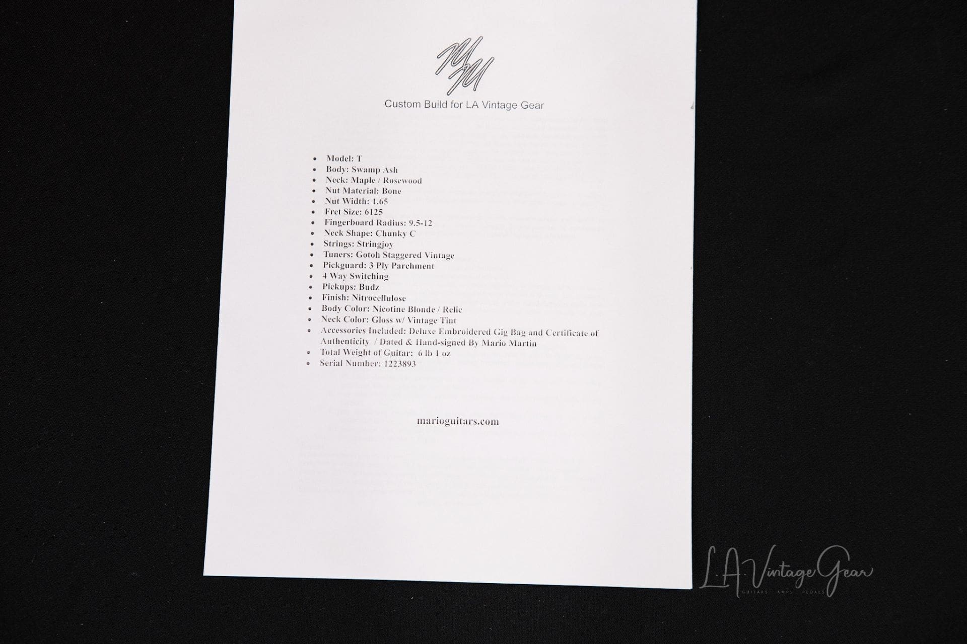 Mario Martin “Model T” Electric Guitar – Relic’d Nicotine Blonde Finish & Budz Pickups!