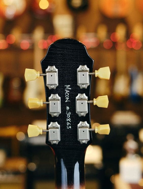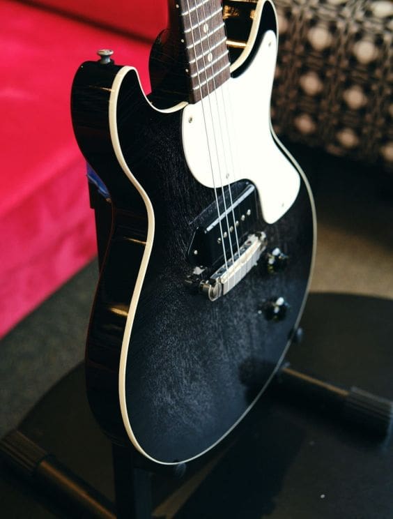 The Macon Junior a guitar made for gigging. The slab body, contoured heel and wraparound bridge give this guitar ultimate simple playability. Featuring many of the same subtle touches as its big brother, the 'Macon Special', this instrument is a serious take on the old student favorite. Hand-wound pickups include a P90, and a high-quality wraparound ABM bridge with single volume and tone controls.