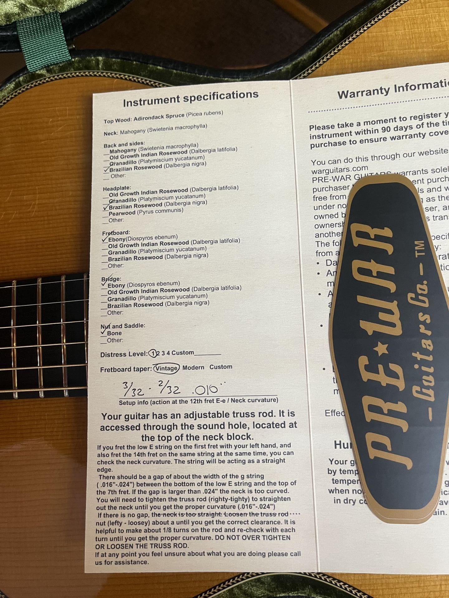 We utilize hot hide glue for all of the bracing as well as in our perfectly fit traditional dovetail neck joints. We use Torrefied tops and hand carved Torrefied brace wood for their dry-aged tone. You get a guitar with the soul, sound, and look of a well-loved vintage instrument, but with the price, adjust-ability, and reliability of a modern guitar.