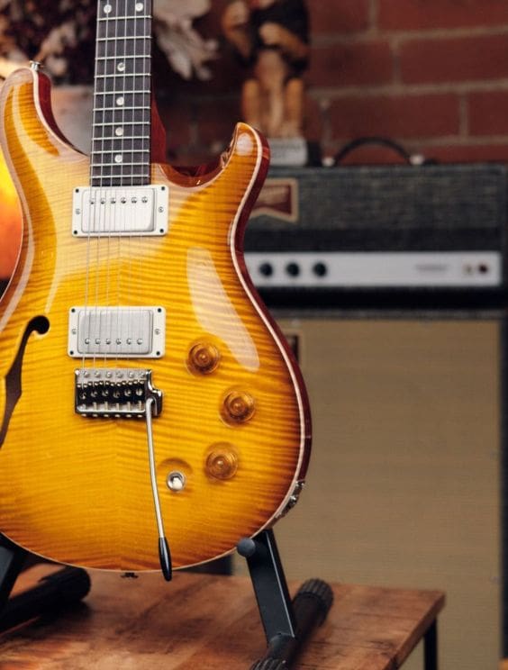 - Beautifully figured Artist Grade figured solid maple top paired with a semi-hollow mahogany body