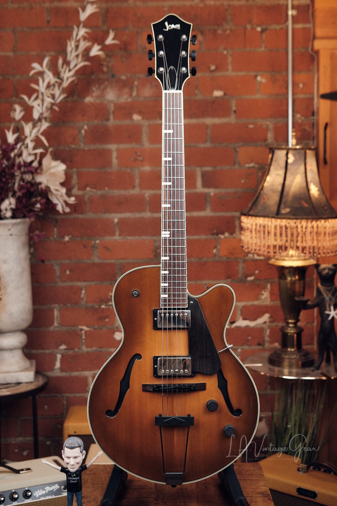 Check out this amazing TV Jones Custom Signature Archtop guitar we just got in. This is an unique one of a kind piece was made for L.A. session player Thom Rotella.
