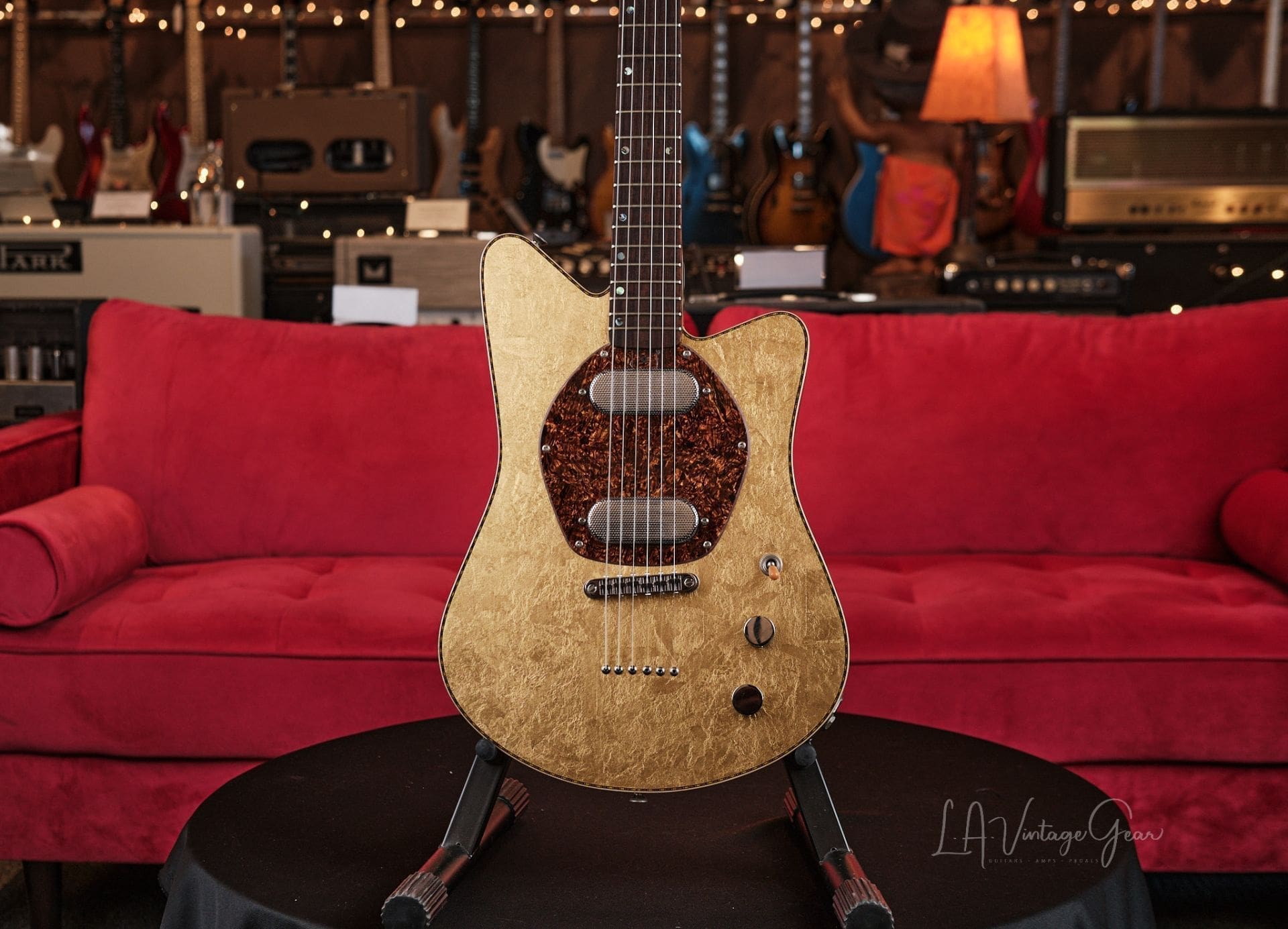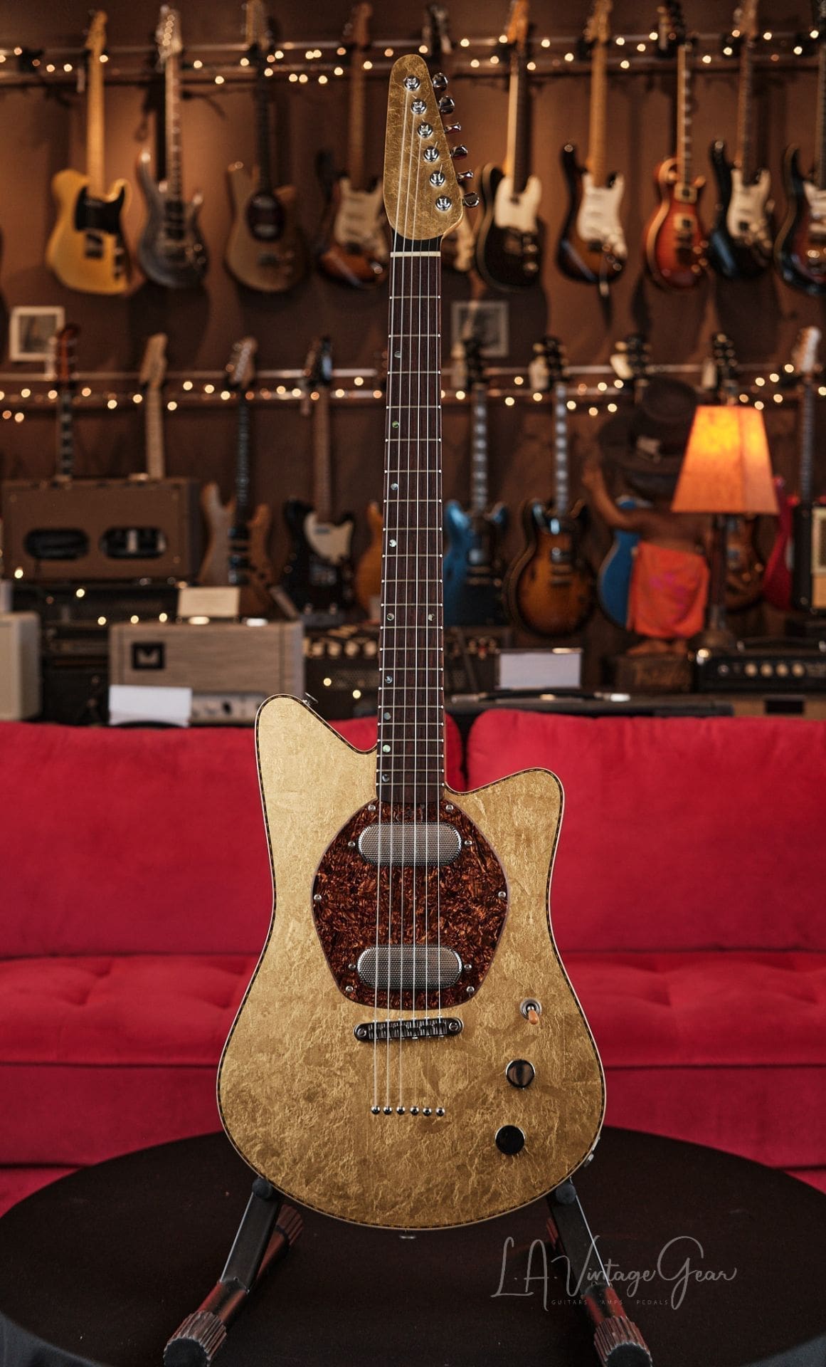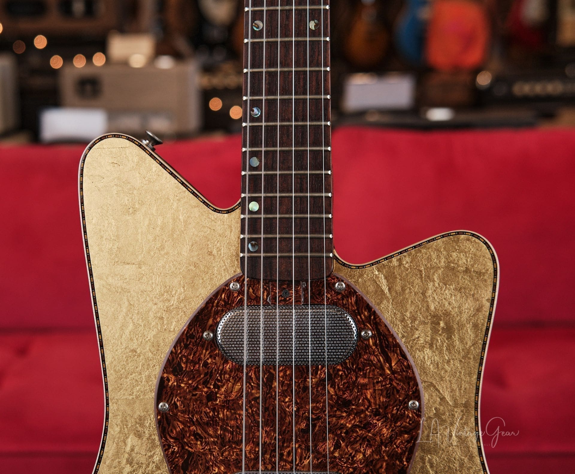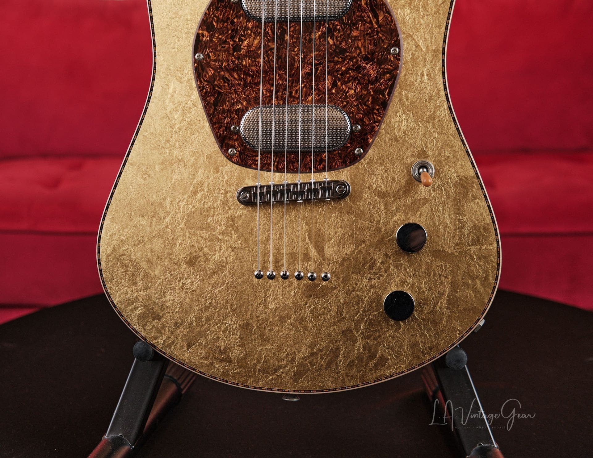 Versoul Raya 6 Custom Electric Solid Body Guitar #0472 – In Gold Leaf 23 carat finished Top and Headstock! Namm Demo!